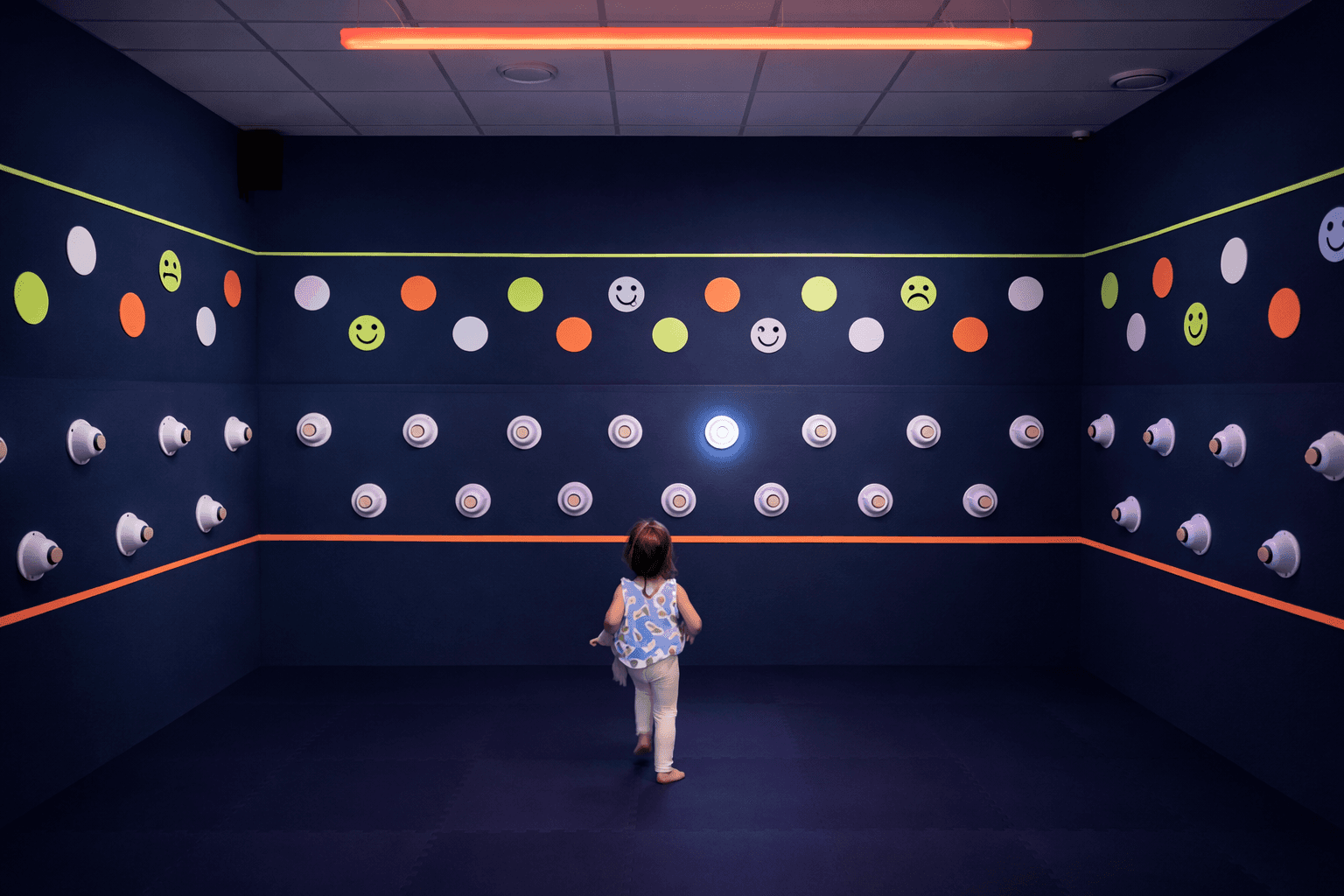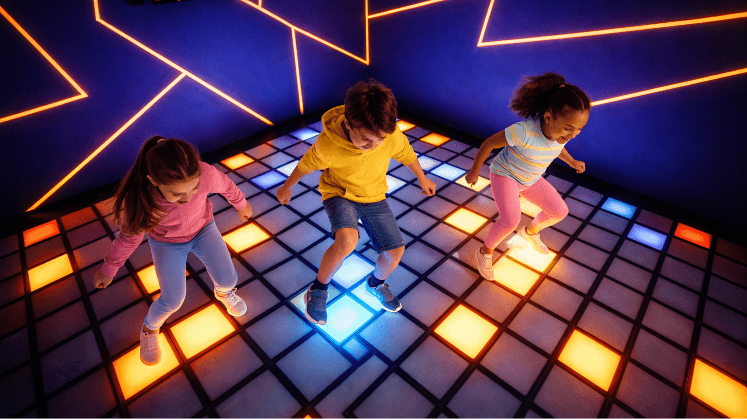 Interaktivní svět plný barev a světelných efektů s podlahou z podsvícených dlaždic. Děti rozvíjejí koordinaci, postřeh, motoriku i spolupráci.